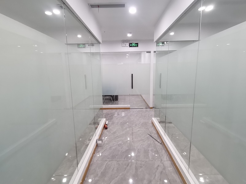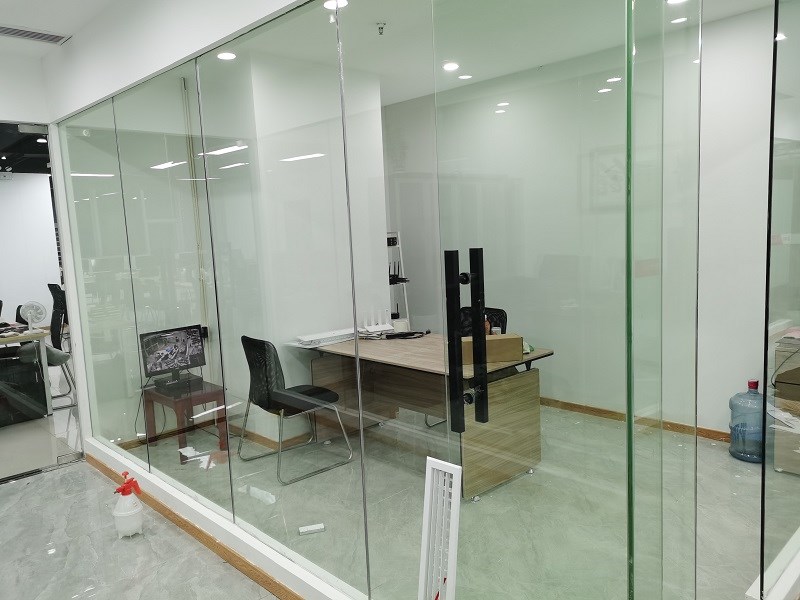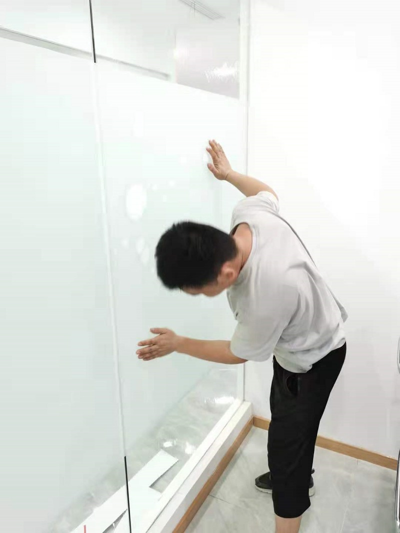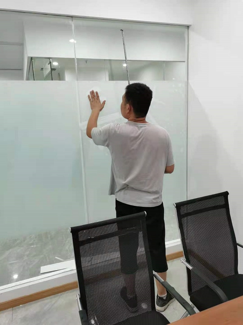 3.  案例介紹:辦公室玻璃隔斷,為了室內更好的采光,但是透明玻璃隱私性欠缺,最終選擇邦臣窗膜,透光不透明磨砂膜,既能保證光線,又能保證辦公室的隱私性